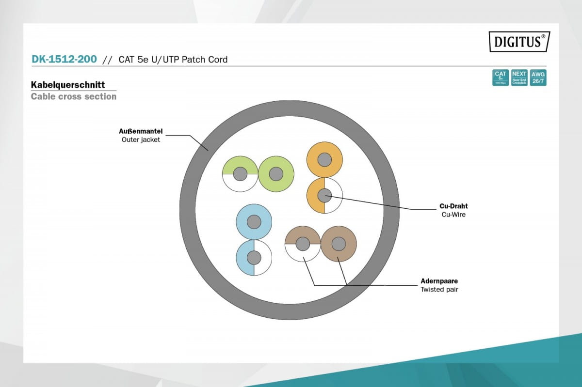 Digitus Patch cord U/UTP kat.5e PVC 20m szary
