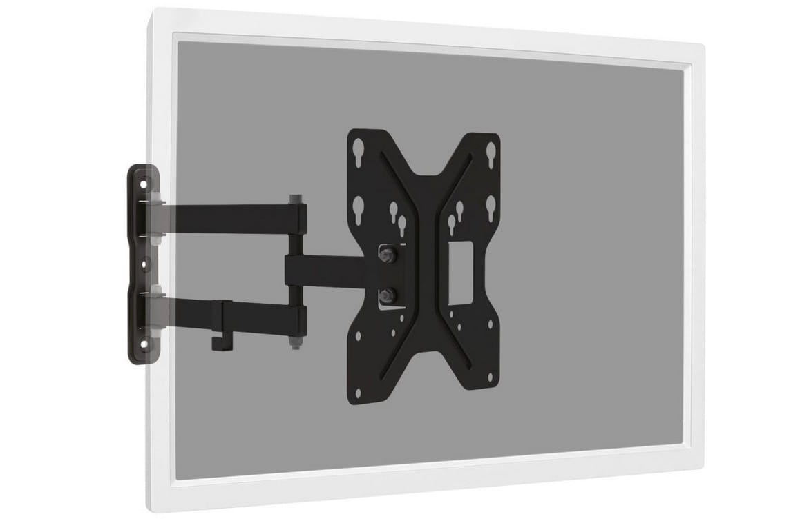 Uchwyt posiada otwory w standardzie VESA (75x75, 100x100, 200x100, 200x200) umożliwiające montaż ekranu o przekątnej do 42 lub więcej jeżeli jego waga nie przekracza 30kg. Uchwyt umożliwia szeroki zakres regulacji w pionie oraz poziomie. Uchwyt wykonany z wysokiej jakości materiałów oraz malowany proszkowo na kolor czarny.