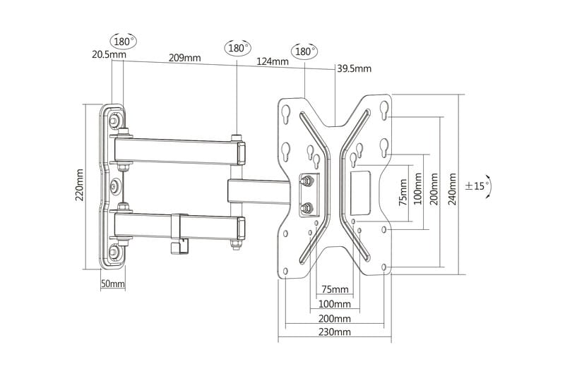 | Standard VESA | 100 x 100 • 200 x 100 • 200 x 200 • 75 x 75 |