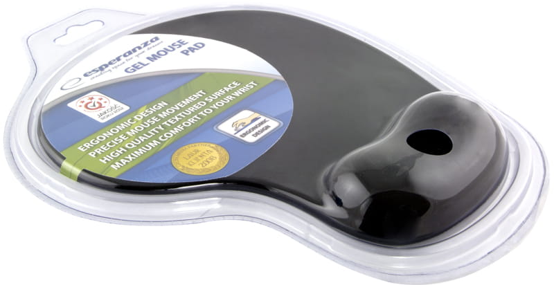 Podkładka żelowa pod mysz przeznaczona do pracy zarówno z myszkami optycznymi jak i laserowymi. Zapewnia wysoką precyzję ruchu myszki. Dopasowuje się do kształtu nadgarstków, pomaga utrzymać je w prawidłowej pozycji oraz zapobiega ich zmęczeniu w trakcie pracy. Pokryta łatwym do utrzymania w czystości materiałem. Antypoślizgowy spód zapobiega przesuwaniu się podkładki po biurku.