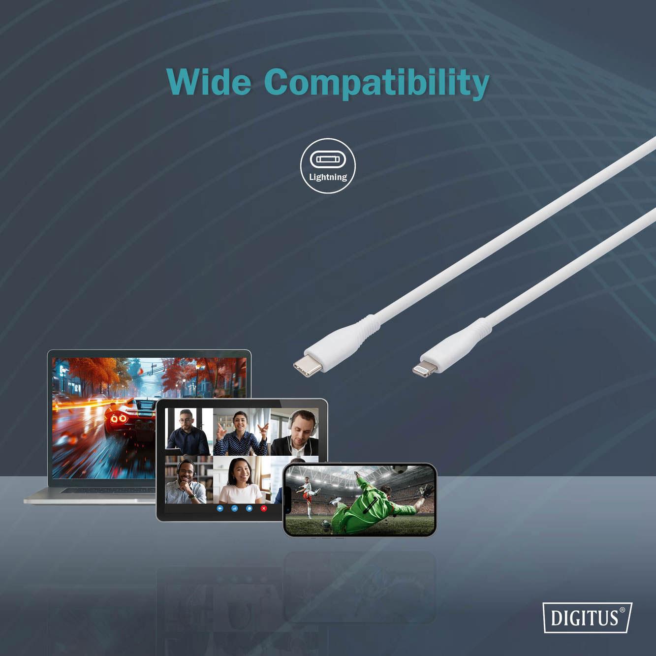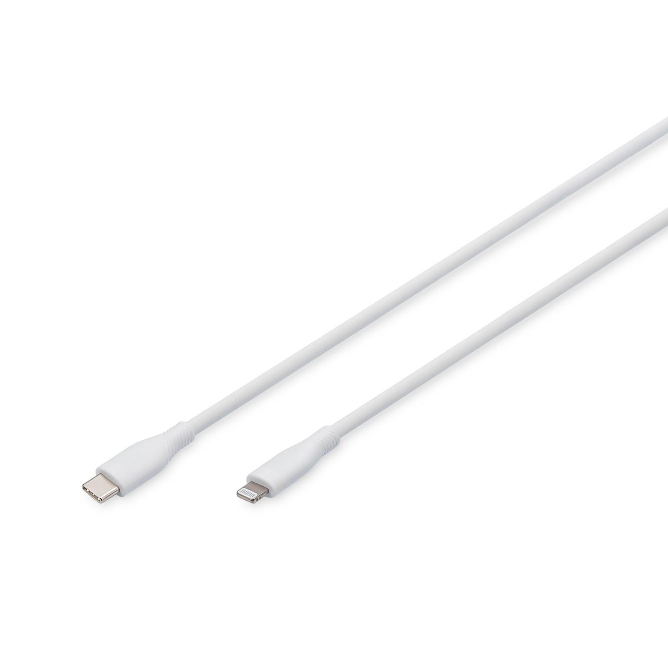 Kabel zasilający DIGITUS silikonowy USB-C - Lightning, USB 2.0 60W, certyfikat MFI, 2m biały