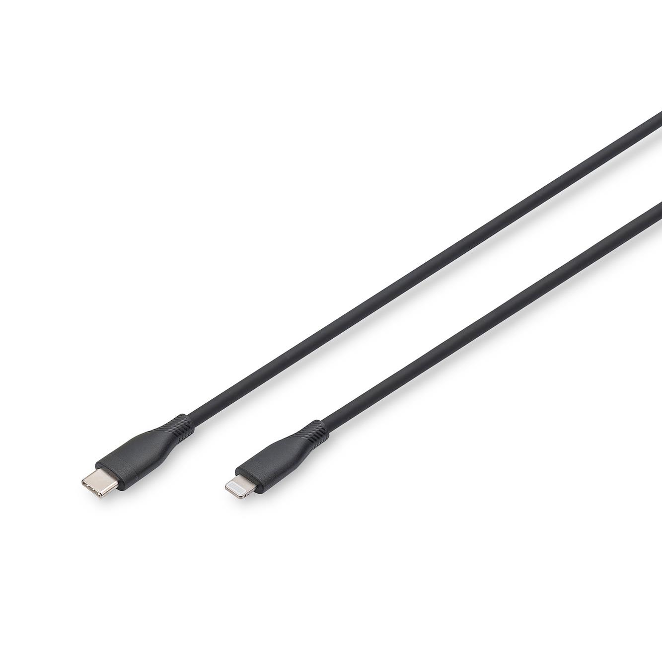 Kabel zasilający DIGITUS silikonowy USB-C - Lightning, USB 2.0 60W, certyfikat MFI, 2m czarny
