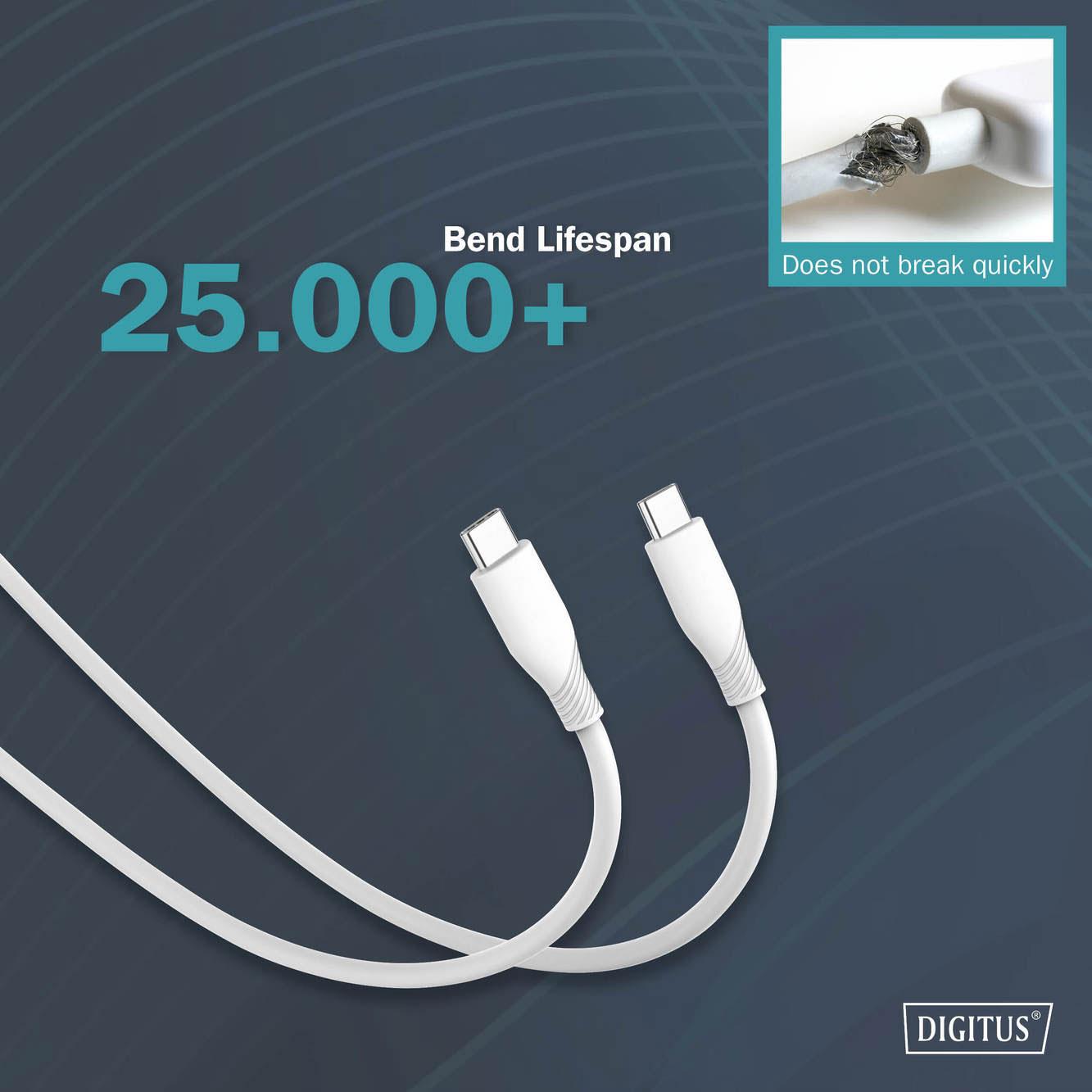 Kabel zasilający DIGITUS silikonowy USB-C - USB-C, USB 2.0 60W, 2m biały