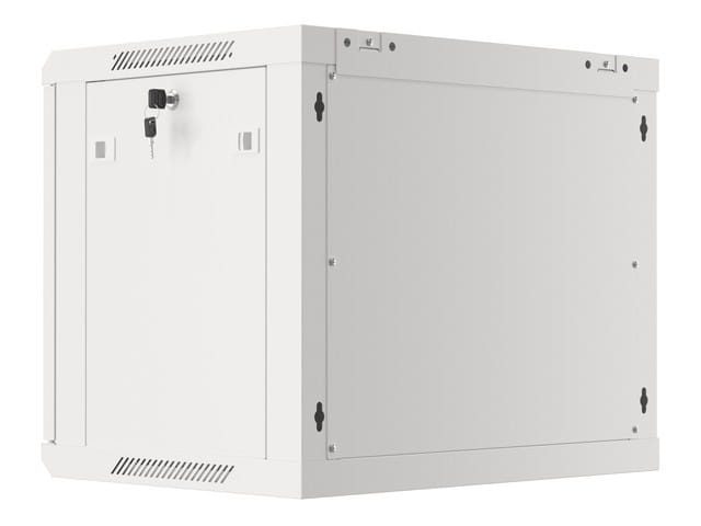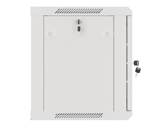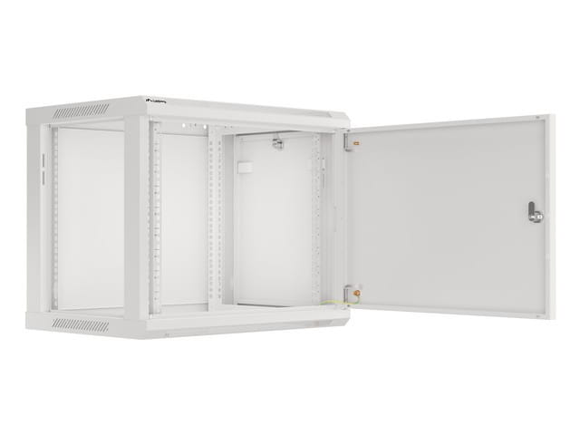 Szafa wisząca jednosekcyjna Lanberg WF01-6409-00S to rozwiązanie przeznaczone do budowy sieci, montażu okablowania oraz sprzętu w rozmiarze 19 o maksymalnym łącznym udźwigu do 60 kg. Może być stosowana w sieciach i serwerowniach zarówno w małych, jak i średnich firmach. Sprawdzi się również w instalacjach niskoprądowych takich jak sieci telewizji kablowych, systemy alarmowe, przeciwpożarowe, kontroli dostępu oraz systemy monitoringu CCTV i IP. Dzięki odpowiedniej konstrukcji, szafa umożliwia łatwy, samodzielny montaż. Charakteryzuje się szczelnością IP20, otwieranymi przednimi drzwiami z możliwością obrotu do 180°, wyposażonymi w zamek, zdejmowanymi bocznymi panelami (z zamkami w zestawie). Szafa posiada możliwość wprowadzenia okablowania poprzez górny i dolny panel. Całość wykonana jest z wysokiej jakości stali walcowanej, a dzięki konstrukcji do samodzielnego montażu (flat pack) znajduje się w płaskim opakowaniu co ułatwia transport. Dodatkowo w przesyłce załączone są dodatkowe akcesoria do mocowania szyn nośnych, śruby M6 oraz zaślepki paneli wejściowych.