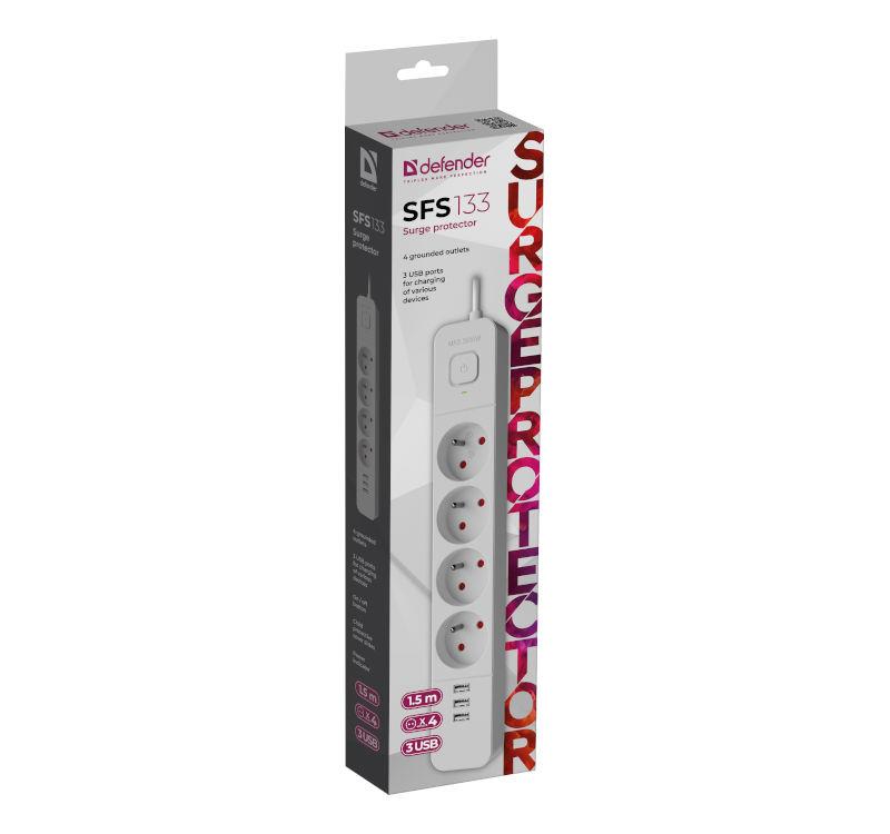 Listwa antyprzepięciowa Defender SFS133 1,5m 4gniazda 3usb
