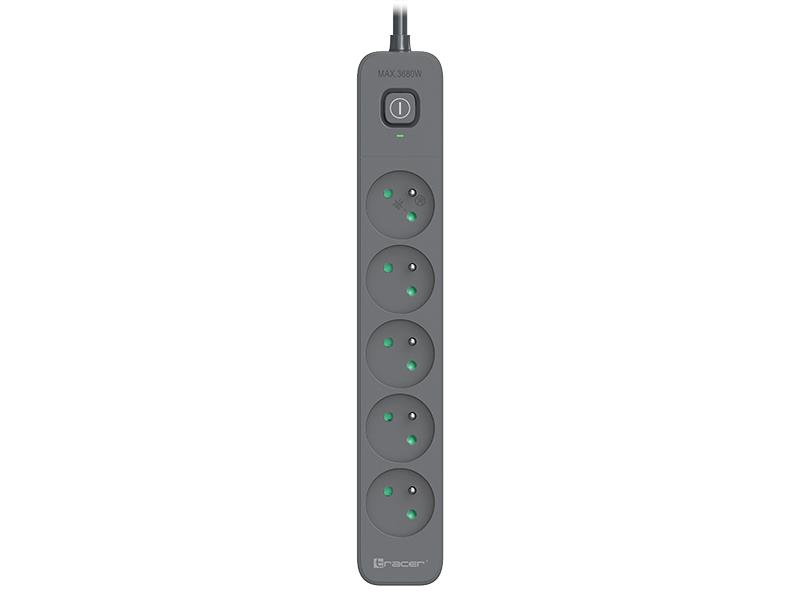 Listwa zasilająca przeciwprzepięciowa Tracer PowerLine+ 5m, 5 gniazd, wyłącznik
