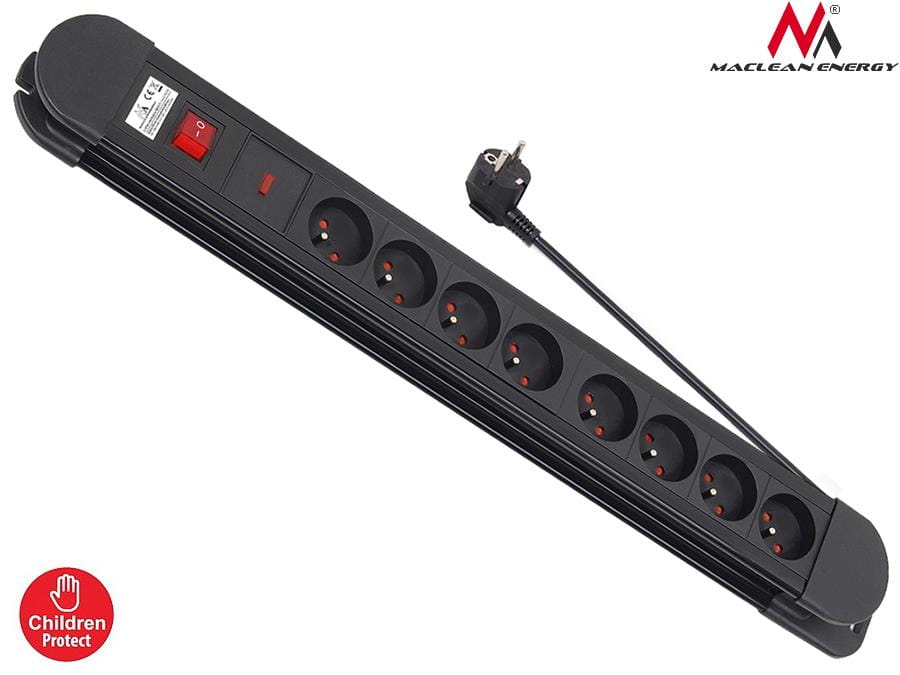 Listwa zasilająca przedłużacz Maclean MCE11 8 gniazd z 1 włącznik czarna 1,5m 2300W