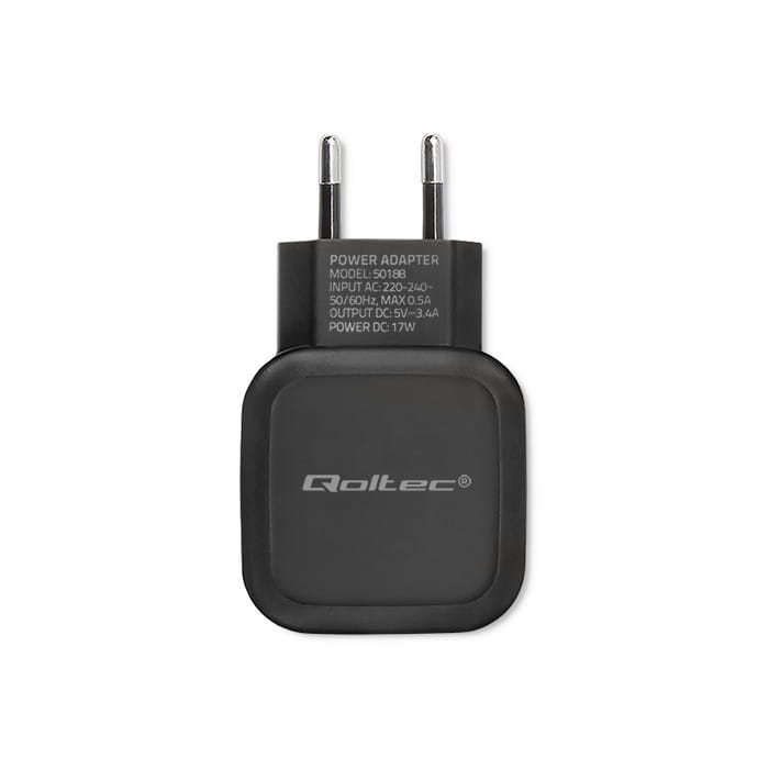Qoltec Ładowarka sieciowa 17W | 5V | 3.4A | 2xUSB + kabel USB typC