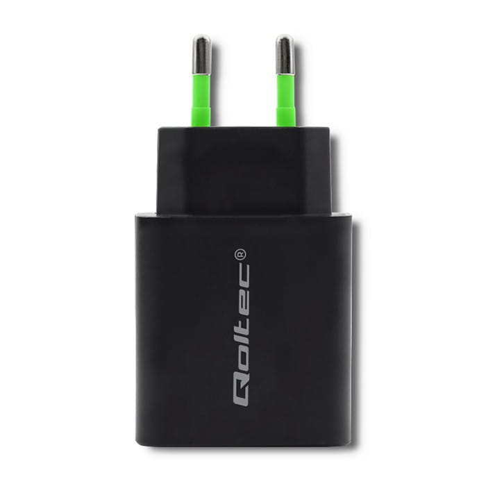 Qoltec Ładowarka sieciowa | 18W | 5-12V | 1.5-3A | USB typ C PD | USB QC 3.0 | Czarna