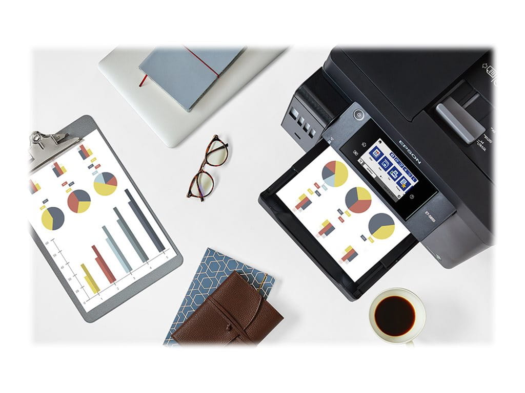 Drukuj, skanuj, kopiuj i wysyłaj faksy za pomocą tego prostego w obsłudze urządzenia EcoTank, które zapewnia wyjątkowo niski koszt wydruku strony. Zadania można szybko wykonać dzięki dużej prędkości drukowania i skanowania, dwóm przednim podajnikom na 250 arkuszy, podajnikowi tylnemu na 50 arkuszy oraz automatycznemu podajnikowi dokumentów na 50 arkuszy. Drukuj, tak jak lubisz, korzystając z opcji druku mobilnego, łączności Ethernet oraz ekranu dotykowego LCD o przekątnej 10,9 cm.